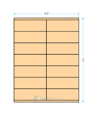 Sheet Size: 8 1/2" x 11" Label Shape: Square Corners Label Size: 4.1875" x 1.5" Labels/Sheet: 14 Perforation: No Perf