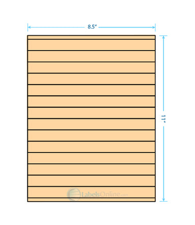 Sheet Size: 8 1/2" x 11" Label Shape: Square Corners Label Size: 8.5" x .75" Labels/Sheet: 14 Perforation: No Perf