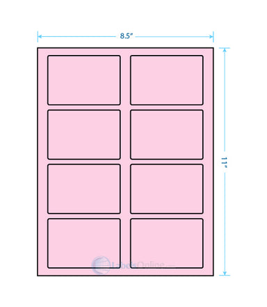 Sheet Size: 8 1/2" x 11" Label Shape: Square Corners Label Size: 3.5" x 2.375" Labels/Sheet: 8 Perforation: No Perf