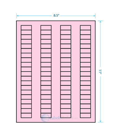 Sheet Size: 8 1/2" x 11" Label Shape: Square Corners Label Size: 1.7225" x .5" Labels/Sheet: 80 Perforation: No Perf