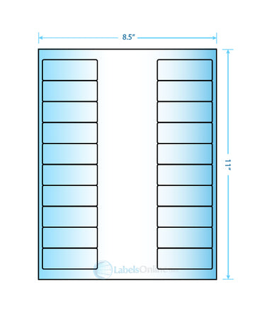 Sheet Size: 8 1/2" x 11" Label Shape: Round Corners Label Size: 3.4375" x .667" Labels/Sheet: 30 Perforation: No Perf Compare to: Avery...