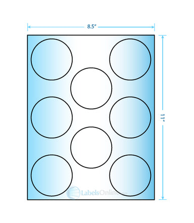 Sheet Size: 8 1/2" x 11" Label Shape: Circles Label Size: 2.75" Labels/Sheet: 8 Perforation: No Perf