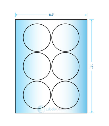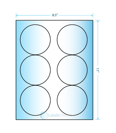 Sheet Size: 8 1/2" x 11" Label Shape: Circles Label Size: 3.25" Labels/Sheet: 6 Perforation: No Perf