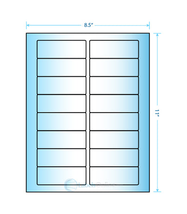 Sheet Size: 8 1/2" x 11" Label Shape: Round Corners Label Size: 3.375" x 1.25" Labels/Sheet: 16 Perforation: No Perf