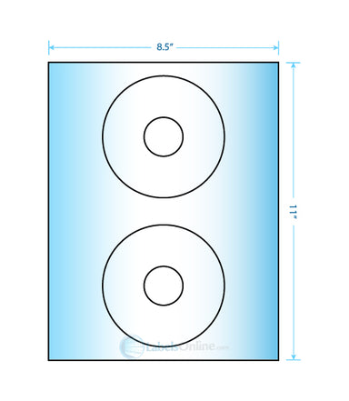 Sheet Size: 8 1/2" x 11" Label Shape: Circles Label Size: 4.5" CD Labels/Sheet: 2 Perforation: No Perf Compare to: Avery 5824