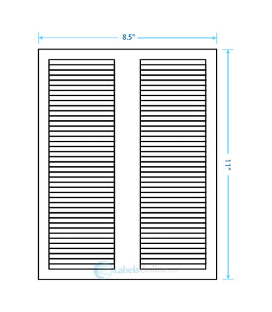 Sheet Size: 8 1/2" x 11" Label Shape: Square Corners Label Size: 3.125" x .5" Labels/Sheet: 40 Perforation: No Perf