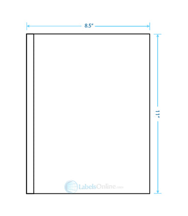Sheet Size: 8 1/2" x 11" Label Shape: Square Corners Label Size: 1 @ .5" x 11"; 1 @ 8" x 11" Labels/Sheet: 2 Perforation: No Perf