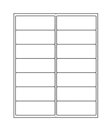 Sheet Size: 8 1/2" x 11" Label Shape: Round Corners Label Size: 4" x 1.4375" Labels/Sheet: 14 Perforation: No Perf