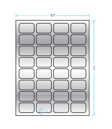 Sheet Size: 8 1/2" x 11" Label Shape: Round Corners Label Size: 1.75" x 1.125" Labels/Sheet: 32 Perforation: No Perf
