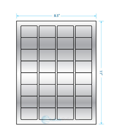 Sheet Size: 8 1/2" x 11" Label Shape: Round Corners Label Size: 1.75" x 1.25" Labels/Sheet: 32 Perforation: No Perf Compare to: Avery 6...