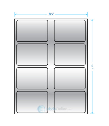 Sheet Size: 8 1/2" x 11" Label Shape: Round Corners Label Size: 4" x 2.5" Labels/Sheet: 8 Perforation: No Perf
