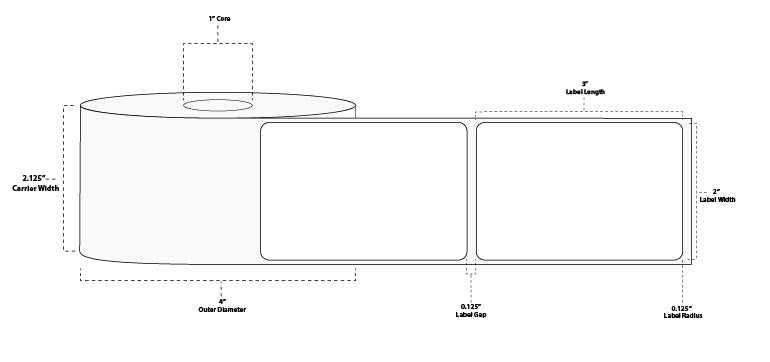 2" x 3" Floodcoated Thermal Transfer Paper Label; Perforated; 1" Core; 4" OD; 12 Rolls/carton (500 Labels/roll) - 345 Green