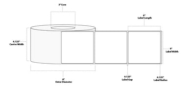Width:6" Length:4" Core Diameter:3" Outer Diameter:8" Product Line:Floodcoated Thermal Transfer Printer Type:Tabletop/Industrial Mate...