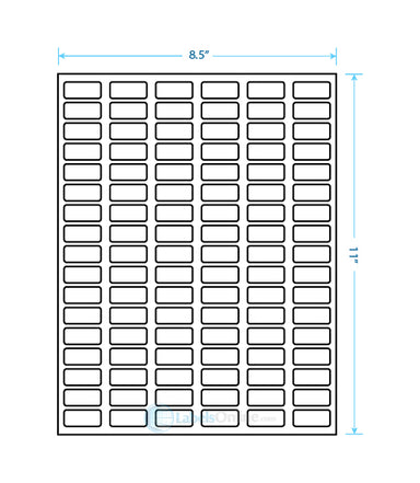 Sheet Size: 8 1/2" x 11" Label Shape: Round Corners Label Size: 1.25" x .75" Labels/Sheet: 72 Perforation: No Perf
