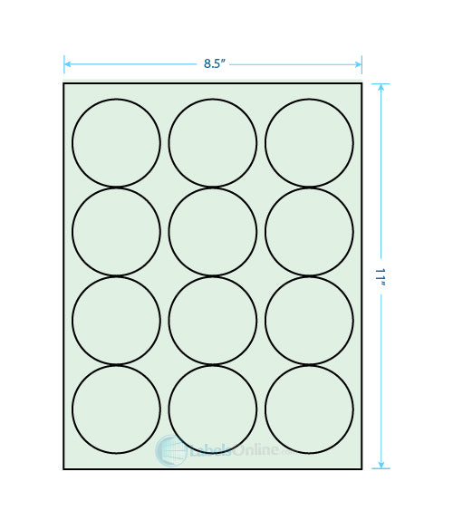 Zoom icon Click to expand Tap to zoom Chevron down icon Chevron down icon 2.5" Circle - 12 up; Circles - Pastel Green (Laser) Part Number: CSLC-25-25-12-PG-250 Save Liquid error (snippets/product-badge line 32): Computation results in '-Infinity'% $66.94 | / 250 sheets (3000 labels) - $66.94 500 sheets (6000 labels) - $113.69 750 sheets (9000 labels) - $149.53 1000 sheets (12000 labels) - $199.40 2000 sheets (24000 labels) - $302.26 3000 sheets (36000 labels) - $437.86 4000 sheets (48000 labels) - $570.33 5000 sheets (60000 labels) - $688.77 10000 sheets (120000 labels) - $1,290.33 20000 sheets (240000 labels) - $2,485.69 250 sheets (3000 labels) 500 sheets (6000 labels) 750 sheets (9000 labels) 1000 sheets (12000 labels) 2000 sheets (24000 labels) 3000 sheets (36000 labels) 4000 sheets (48000 labels) 5000 sheets (60000 labels) 10000 sheets (120000 labels) 20000 sheets (240000 labels) Quantity Chevron down icon Availability: Translation missing: en.general.icons.icon_check_circle icon In stock, ready to be shipped Quantity Add to cart Spinner icon Notify me when back in stock Email address Email me when available Product Description: Sheet Size: 8 1/2" x 11" Label Shape: Circles Label Size: 2.5" Labels/Sheet: 12 Perforation: No Perf Compare to: Avery 5194, 5294 Label Template Downloads Click Here to Download Click Here to Download