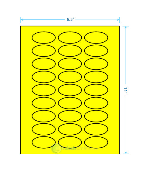 Zoom icon Click to expand Tap to zoom Chevron down icon Chevron down icon 2" x 1" - 27 up; Ovals - Fluorescent Yellow (Laser) Part Number: CSLO-2-1-27-FY-500 Save Liquid error (snippets/product-badge line 32): Computation results in '-Infinity'% $158.88 | / 500 sheets (13500 labels) - $158.88 750 sheets (20250 labels) - $185.37 1000 sheets (27000 labels) - $247.71 2000 sheets (54000 labels) - $392.66 3000 sheets (81000 labels) - $578.12 4000 sheets (108000 labels) - $738.64 5000 sheets (135000 labels) - $891.37 10000 sheets (270000 labels) - $1,709.58 20000 sheets (540000 labels) - $3,084.15 500 sheets (13500 labels) 750 sheets (20250 labels) 1000 sheets (27000 labels) 2000 sheets (54000 labels) 3000 sheets (81000 labels) 4000 sheets (108000 labels) 5000 sheets (135000 labels) 10000 sheets (270000 labels) 20000 sheets (540000 labels) Quantity Chevron down icon Availability: Translation missing: en.general.icons.icon_check_circle icon In stock, ready to be shipped Quantity Add to cart Spinner icon Notify me when back in stock Email address Email me when available Product Description: Sheet Size: 8 1/2" x 11" Label Shape: Ovals Label Size: 2" x 1" Labels/Sheet: 27 Perforation: No Perf Label Template Downloads Click Here to Download Click Here to Download