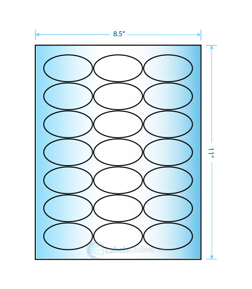 Zoom icon Click to expand Tap to zoom Chevron down icon Chevron down icon 2.5" x 1.375" - 21 up; Ovals - Mid Gloss (Laser) Part Number: CSLO-25-1375-21-MG-500 Save Liquid error (snippets/product-badge line 32): Computation results in '-Infinity'% $129.27 | / 500 sheets (10500 labels) - $129.27 750 sheets (15750 labels) - $137.06 1000 sheets (21000 labels) - $182.26 2000 sheets (42000 labels) - $366.16 3000 sheets (63000 labels) - $548.50 4000 sheets (84000 labels) - $730.84 5000 sheets (105000 labels) - $913.19 10000 sheets (210000 labels) - $1,405.67 20000 sheets (420000 labels) - $2,750.63 500 sheets (10500 labels) 750 sheets (15750 labels) 1000 sheets (21000 labels) 2000 sheets (42000 labels) 3000 sheets (63000 labels) 4000 sheets (84000 labels) 5000 sheets (105000 labels) 10000 sheets (210000 labels) 20000 sheets (420000 labels) Quantity Chevron down icon Availability: Translation missing: en.general.icons.icon_check_circle icon In stock, ready to be shipped Quantity Add to cart Spinner icon Notify me when back in stock Email address Email me when available Product Description: Sheet Size: 8 1/2" x 11" Label Shape: Ovals Label Size: 2.5" x 1.375" Labels/Sheet: 21 Perforation: No Perf Label Template Downloads Click Here to Download Click Here to Download