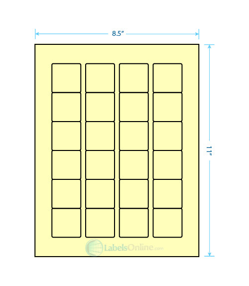 Zoom icon Click to expand Tap to zoom Chevron down icon Chevron down icon 1.5" x 1.5" - 24 up; Round Corners - Pastel Yellow (Laser) Part Number: CSLRC-15-15-24-PY-250 Save Liquid error (snippets/product-badge line 32): Computation results in '-Infinity'% $66.94 | / 250 sheets (6000 labels) - $66.94 500 sheets (12000 labels) - $113.69 750 sheets (18000 labels) - $149.53 1000 sheets (24000 labels) - $199.40 2000 sheets (48000 labels) - $302.26 3000 sheets (72000 labels) - $437.86 4000 sheets (96000 labels) - $570.33 5000 sheets (120000 labels) - $688.77 10000 sheets (240000 labels) - $1,290.33 20000 sheets (480000 labels) - $2,485.69 250 sheets (6000 labels) 500 sheets (12000 labels) 750 sheets (18000 labels) 1000 sheets (24000 labels) 2000 sheets (48000 labels) 3000 sheets (72000 labels) 4000 sheets (96000 labels) 5000 sheets (120000 labels) 10000 sheets (240000 labels) 20000 sheets (480000 labels) Quantity Chevron down icon Availability: Translation missing: en.general.icons.icon_check_circle icon In stock, ready to be shipped Quantity Add to cart Spinner icon Notify me when back in stock Email address Email me when available Product Description: Sheet Size: 8 1/2" x 11" Label Shape: Round Corners Label Size: 1.5" x 1.5" Labels/Sheet: 24 Perforation: No Perf Compare to: Avery 22805 Label Template Downloads Click Here to Download Click Here to Download