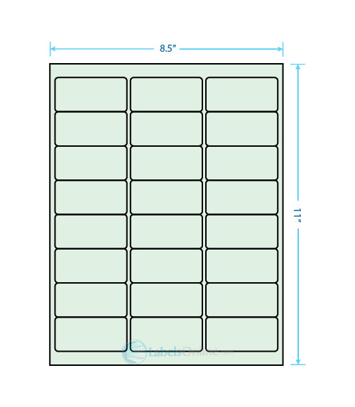 Zoom icon Click to expand Tap to zoom Chevron down icon Chevron down icon 2.625" x 1.25" - 24 up; Round Corners - Pastel Green (Laser) Part Number: CSLRC-2625-125-24-PG-250 Save Liquid error (snippets/product-badge line 32): Computation results in '-Infinity'% $66.94 | / 250 sheets (6000 labels) - $66.94 500 sheets (12000 labels) - $113.69 750 sheets (18000 labels) - $149.53 1000 sheets (24000 labels) - $199.40 2000 sheets (48000 labels) - $302.26 3000 sheets (72000 labels) - $437.86 4000 sheets (96000 labels) - $570.33 5000 sheets (120000 labels) - $688.77 10000 sheets (240000 labels) - $1,290.33 20000 sheets (480000 labels) - $2,485.69 250 sheets (6000 labels) 500 sheets (12000 labels) 750 sheets (18000 labels) 1000 sheets (24000 labels) 2000 sheets (48000 labels) 3000 sheets (72000 labels) 4000 sheets (96000 labels) 5000 sheets (120000 labels) 10000 sheets (240000 labels) 20000 sheets (480000 labels) Quantity Chevron down icon Availability: Translation missing: en.general.icons.icon_check_circle icon In stock, ready to be shipped Quantity Add to cart Spinner icon Notify me when back in stock Email address Email me when available Product Description: Sheet Size: 8 1/2" x 11" Label Shape: Round Corners Label Size: 2.625" x 1.25" Labels/Sheet: 24 Perforation: No Perf Label Template Downloads Click Here to Download
