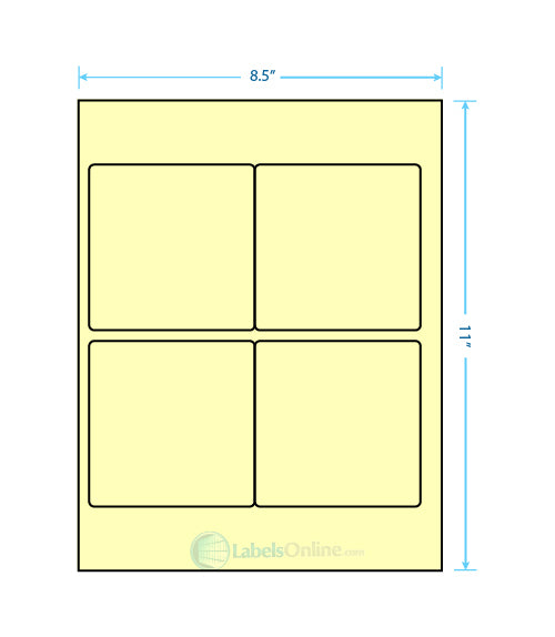 Zoom icon Click to expand Tap to zoom Chevron down icon Chevron down icon 3.875" x 3.875" - 4 up; Round Corners - Pastel Yellow (Laser) Part Number: CSLRC-3875-3875-4-PY-250 Save Liquid error (snippets/product-badge line 32): Computation results in '-Infinity'% $66.94 | / 250 sheets (1000 labels) - $66.94 500 sheets (2000 labels) - $113.69 750 sheets (3000 labels) - $149.53 1000 sheets (4000 labels) - $199.40 2000 sheets (8000 labels) - $302.26 3000 sheets (12000 labels) - $437.86 4000 sheets (16000 labels) - $570.33 5000 sheets (20000 labels) - $688.77 10000 sheets (40000 labels) - $1,290.33 20000 sheets (80000 labels) - $2,485.69 250 sheets (1000 labels) 500 sheets (2000 labels) 750 sheets (3000 labels) 1000 sheets (4000 labels) 2000 sheets (8000 labels) 3000 sheets (12000 labels) 4000 sheets (16000 labels) 5000 sheets (20000 labels) 10000 sheets (40000 labels) 20000 sheets (80000 labels) Quantity Chevron down icon Availability: Translation missing: en.general.icons.icon_check_circle icon In stock, ready to be shipped Quantity Add to cart Spinner icon Notify me when back in stock Email address Email me when available Product Description: Sheet Size: 8 1/2" x 11" Label Shape: Round Corners Label Size: 3.875" x 3.875" Labels/Sheet: 4 Perforation: No Perf Label Template Downloads Click Here to Download