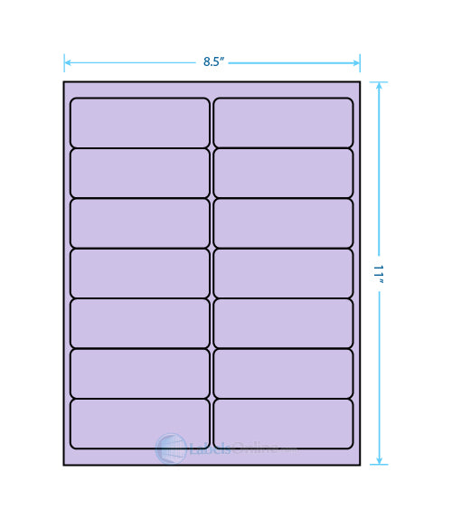 Zoom icon Click to expand Tap to zoom Chevron down icon Chevron down icon 4" x 1.4375" - 14 up; Round Corners - Pastel Purple (Laser) Part Number: CSLRC-4-14375-14-PU-250 Save Liquid error (snippets/product-badge line 32): Computation results in '-Infinity'% $66.94 | / 250 sheets (3500 labels) - $66.94 500 sheets (7000 labels) - $113.69 750 sheets (10500 labels) - $149.53 1000 sheets (14000 labels) - $199.40 2000 sheets (28000 labels) - $302.26 3000 sheets (42000 labels) - $437.86 4000 sheets (56000 labels) - $570.33 5000 sheets (70000 labels) - $688.77 10000 sheets (140000 labels) - $1,290.33 20000 sheets (280000 labels) - $2,485.69 250 sheets (3500 labels) 500 sheets (7000 labels) 750 sheets (10500 labels) 1000 sheets (14000 labels) 2000 sheets (28000 labels) 3000 sheets (42000 labels) 4000 sheets (56000 labels) 5000 sheets (70000 labels) 10000 sheets (140000 labels) 20000 sheets (280000 labels) Quantity Chevron down icon Availability: Translation missing: en.general.icons.icon_check_circle icon In stock, ready to be shipped Quantity Add to cart Spinner icon Notify me when back in stock Email address Email me when available Product Description: Sheet Size: 8 1/2" x 11" Label Shape: Round Corners Label Size: 4" x 1.4375" Labels/Sheet: 14 Perforation: No Perf