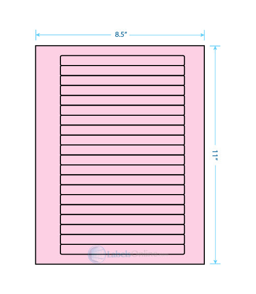 Zoom icon Click to expand Tap to zoom Chevron down icon Chevron down icon 6.25" x .5" - 20 up; Round Corners - Pastel Pink (Laser) Part Number: CSLRC-625-05-20-PP-250 Save Liquid error (snippets/product-badge line 32): Computation results in '-Infinity'% $66.94 | / 250 sheets (5000 labels) - $66.94 500 sheets (10000 labels) - $113.69 750 sheets (15000 labels) - $149.53 1000 sheets (20000 labels) - $199.40 2000 sheets (40000 labels) - $302.26 3000 sheets (60000 labels) - $437.86 4000 sheets (80000 labels) - $570.33 5000 sheets (100000 labels) - $688.77 10000 sheets (200000 labels) - $1,290.33 20000 sheets (400000 labels) - $2,485.69 250 sheets (5000 labels) 500 sheets (10000 labels) 750 sheets (15000 labels) 1000 sheets (20000 labels) 2000 sheets (40000 labels) 3000 sheets (60000 labels) 4000 sheets (80000 labels) 5000 sheets (100000 labels) 10000 sheets (200000 labels) 20000 sheets (400000 labels) Quantity Chevron down icon Availability: Translation missing: en.general.icons.icon_check_circle icon In stock, ready to be shipped Quantity Add to cart Spinner icon Notify me when back in stock Email address Email me when available Product Description: Sheet Size: 8 1/2" x 11" Label Shape: Round Corners Label Size: 6.25" x .5" Labels/Sheet: 20 Perforation: No Perf Label Template Downloads Click Here to Download