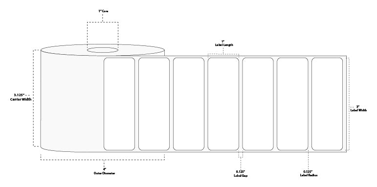 3" x 1" Premium Thermal Transfer Paper Label; Perforated; 1" Core; 4" OD; 12 Rolls/carton (1,375 Labels/roll) - Removable Adhesive