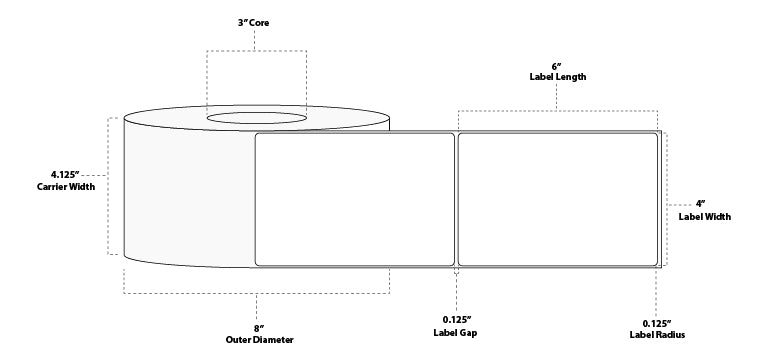 4" x 6" Premium Thermal Transfer Paper Label; Perforated; 3" Core; 8" OD; 4 Rolls/carton (1,000 Labels/roll)